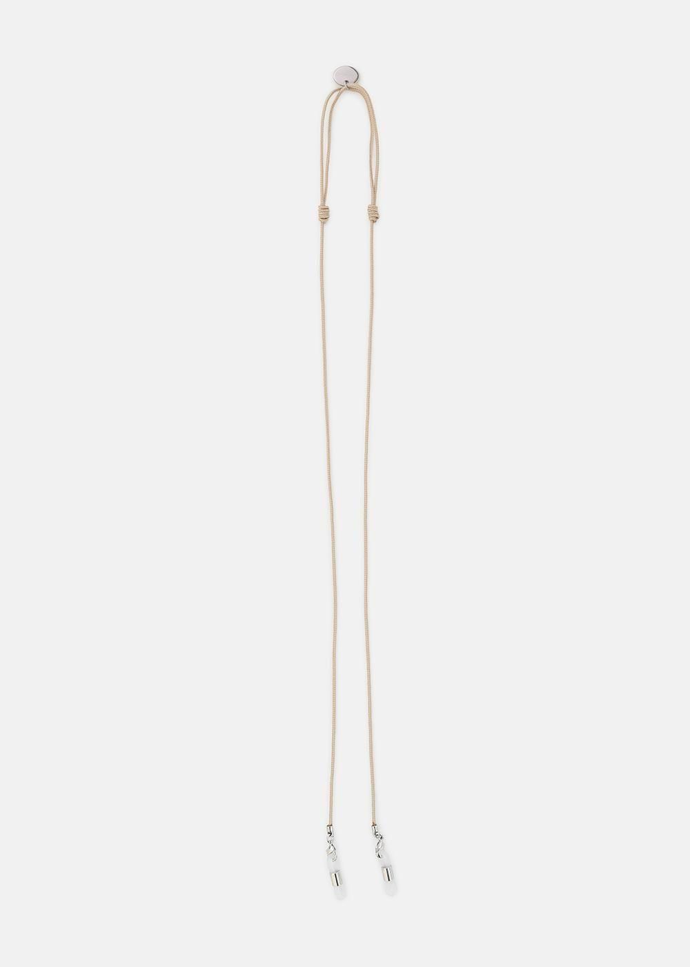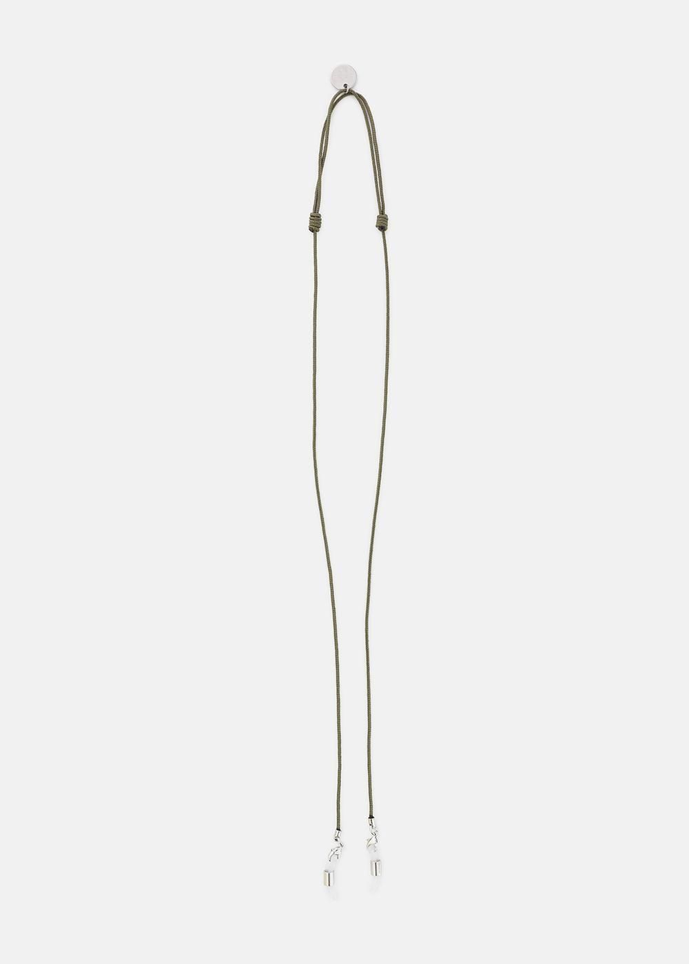 眼鏡の掛け外しが多い方・サングラスを掛ける方向けに製作したアイウェアコードは、紐パーツの先端にシリコンパーツを付けているので、眼鏡のテンプル部分を装着し、首から下げるタイプのアイテムです。外した際に眼鏡がテーブルにぶつかったり、 眼鏡をかけながらコードを垂らすと長すぎる、と言ったストレスも、紐部分を伸ばしたり縮めたりと簡単にスライドし、シチュエーションに応じて好みの長さに設定が可能です。また、一番消耗しやすいシリコンパーツ部分は付け替えが可能な仕様に。 シリコンが伸びて交換したいときに取り替えられるので、本体自体は出来るだけ永くお使いいただけるようにしています。
