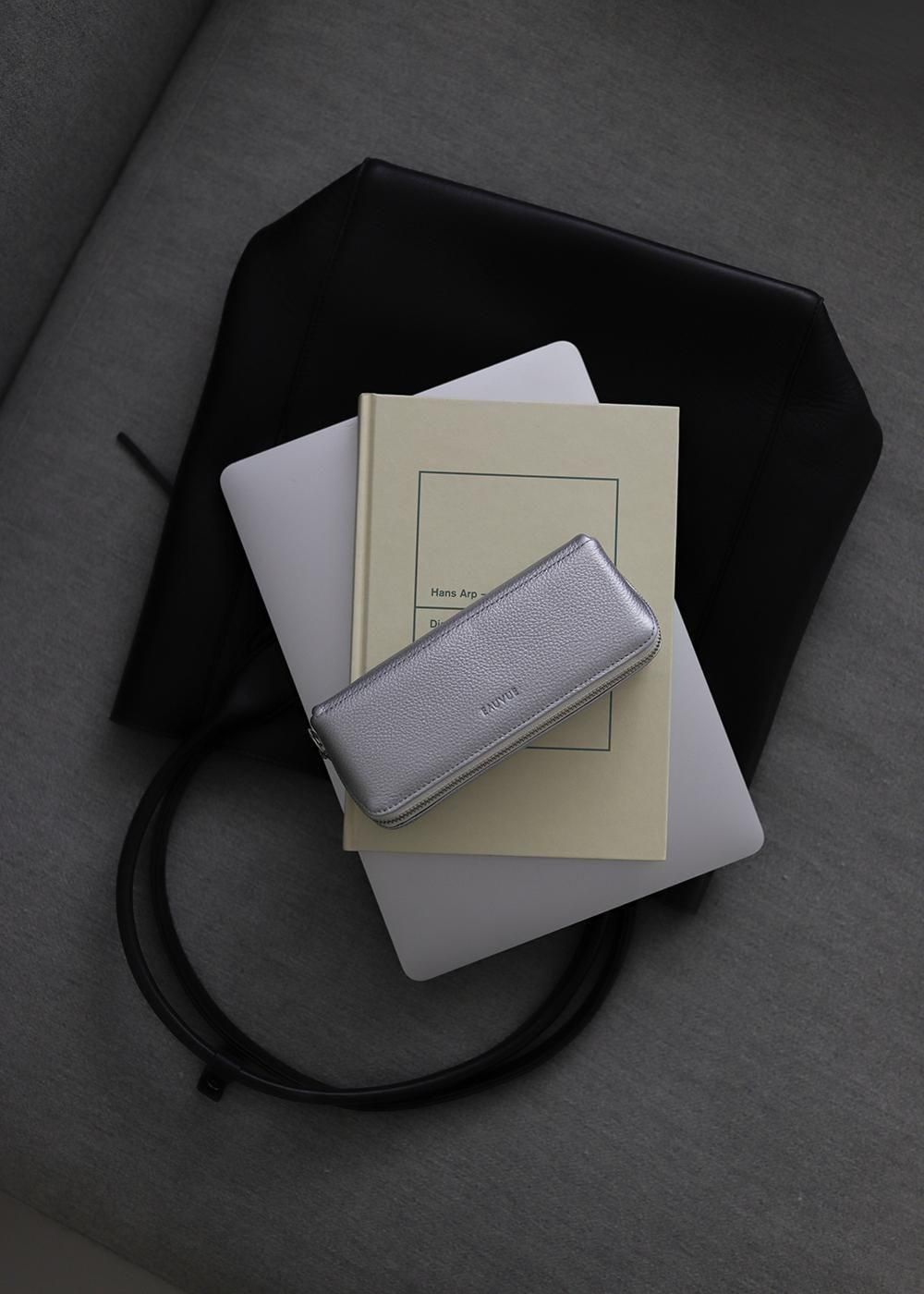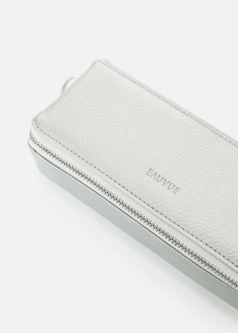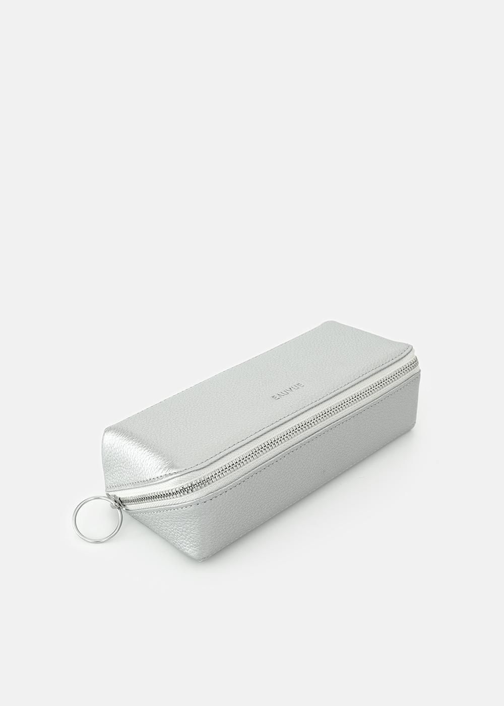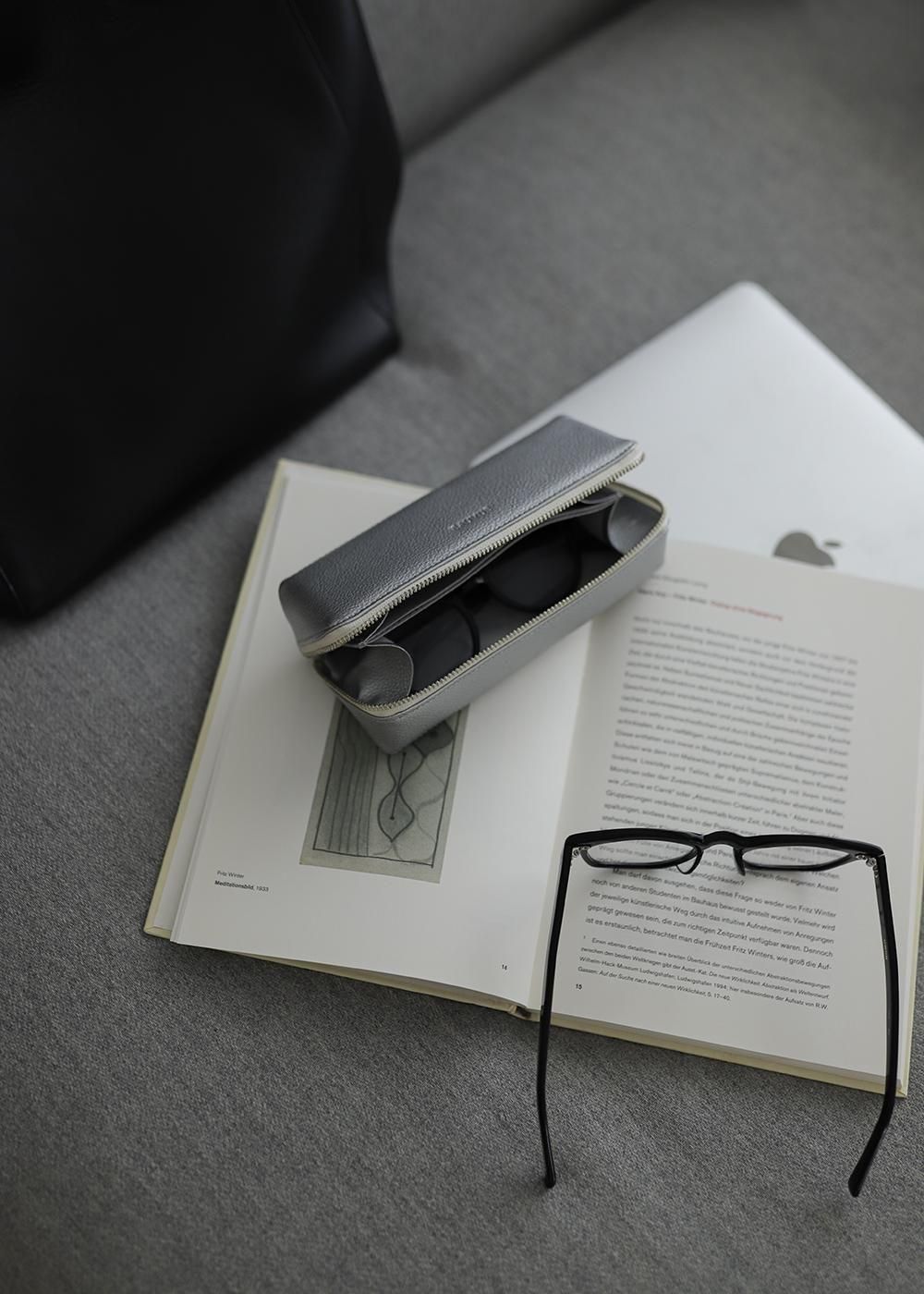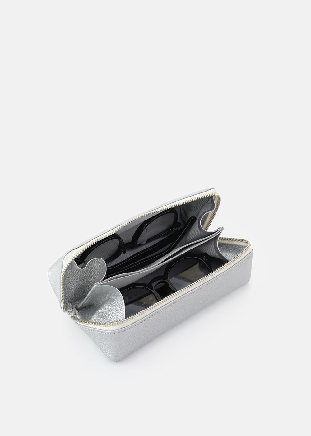 斜めに縫製したファスナーを開くと仕切りがあり、大ぶりなサングラスが2本入る設計になっています。アイウェアが2本入りながら、ファスナーを閉めるとまるで1本入りのようなコンパクトさが特徴のケース。また、アイウェアと文房具、アイウェアとリップなどのケアグッズ ... とそれぞれの生活スタイルによって使い方のバリエーションが生まれます。仕切りにはスリットを施し、メガネ拭きなど小物を収納出来る仕様に。上品な牛革製で永くご愛用いただけます。